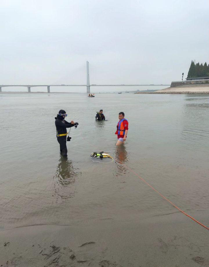 民泰应急中心宜昌总队吴勋军队长,立马用电话叫上附近水上救援能力强的几名志愿者,并自备水下红外线摄影仪、水下高清摄像头、冲锋舟及捞人用具等救援器材,风尘仆仆连夜赶往荆州。宜昌荆州两地11名志愿者一道,他们不辞劳累,两夜一天,在长江里饱受风吹水浸,10多人在水中营救搜寻了50多个小时。即便是民泰两名专业潜水员潜入水底长达几个小时也依然无果,始终没有找到失踪的孩子。