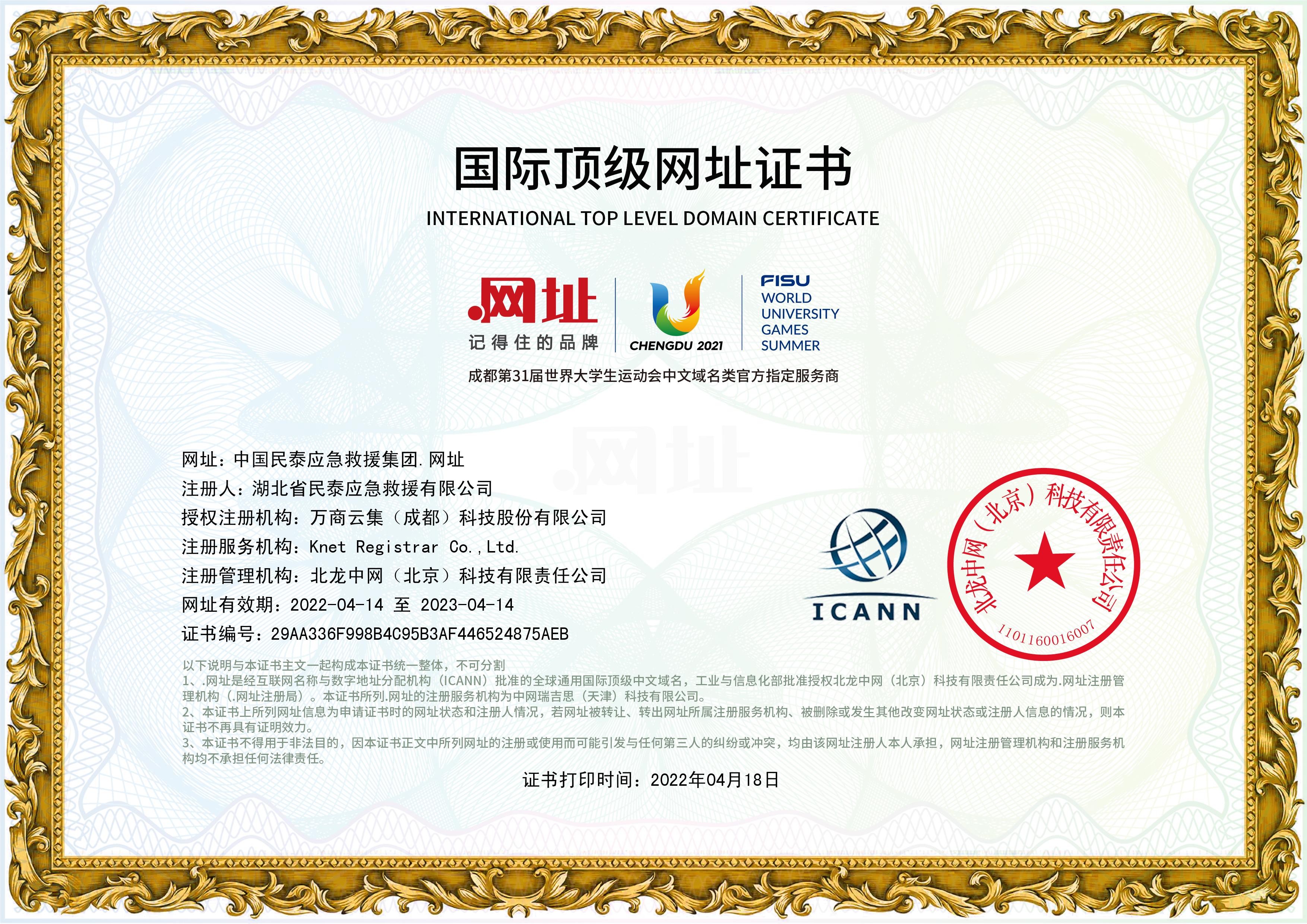 您的位置::首页域名证书中国民泰应急救援集团.网址