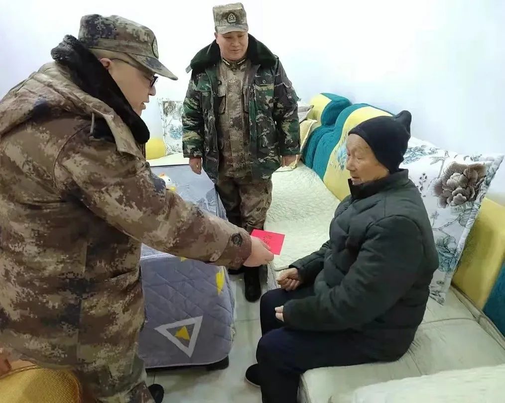 6、三河村尖刀班成员积极联系辖区内鑫源粮油有限公司、臻诚物业管理有限公司,共同深入走访慰问本村困难群众、老党员和老村干20余户,向他们送上新春祝福和慰问物资。