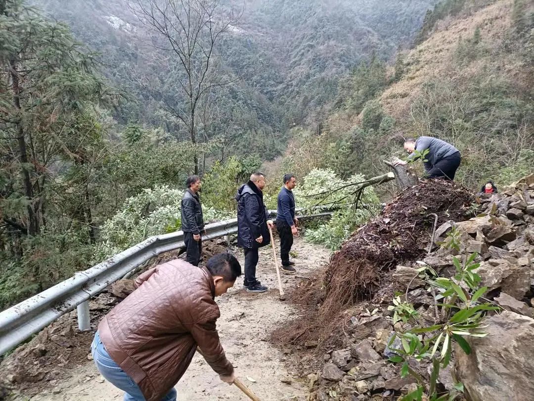 20、村尖刀班在回龙观组清理塌方,组织百姓共同参与抢修。