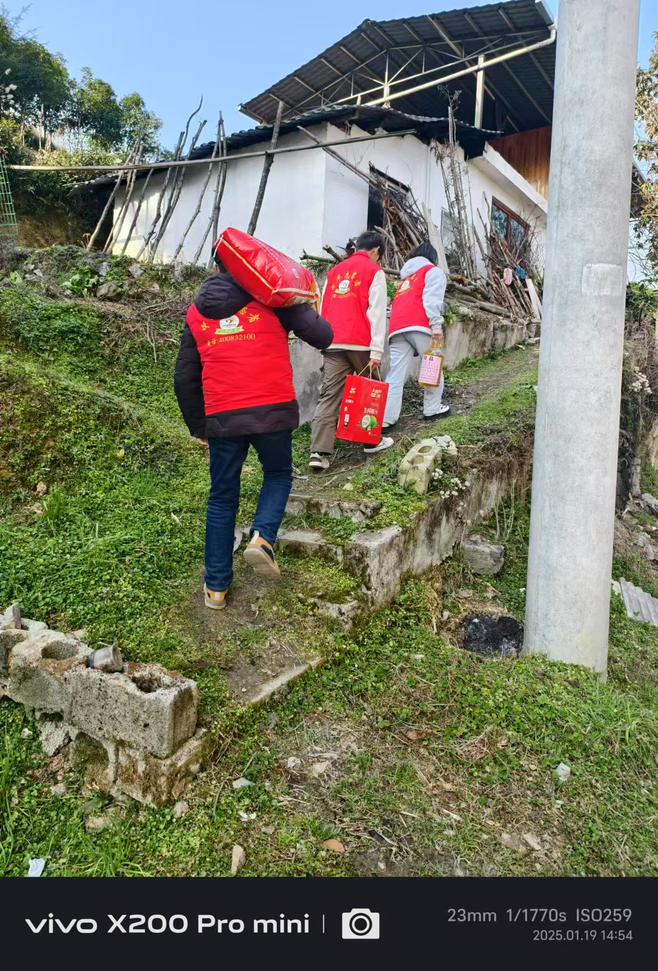 本网讯(记者 常魁星王峰 通讯员 曹文乾)春节将至,岁寒情深。1月19日,湖北恩施州利川市一抹抹志愿红闪耀在凉雾乡陈谷村每个角落,这股爱心暖流温暖着每一户贫困农民家庭。