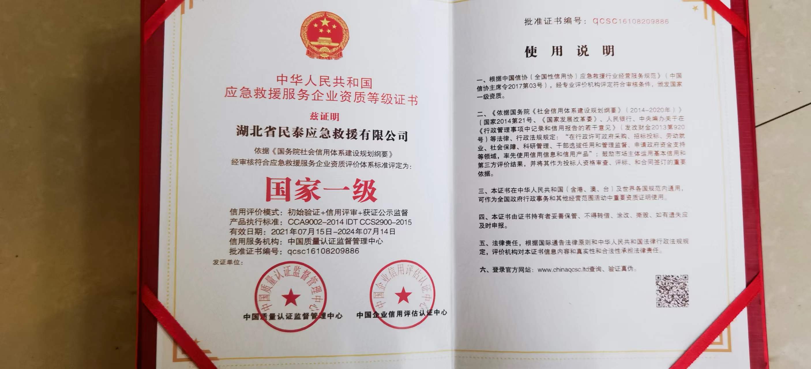 应急救援服务企业资质等级证书