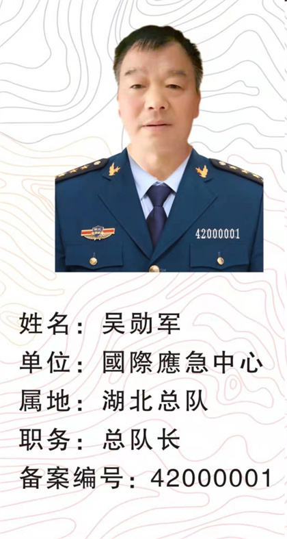 ◆ 单位:国.际应急中心◆ 属地:湖北总队◆ 职务:总队长◆ 备案编号:42000001